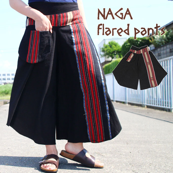 ワイドパンツ ロングパンツ レディース ナガ族ポイント使いフレアパンツ メール便不可 アジアン ファッション エスニック ファッション アジアン雑貨 レディース パンツ ワイドパンツ フレアパンツ Pants コットン 綿 ガウチョパンツ ナガ族 モン族 刺繍 民族 綿