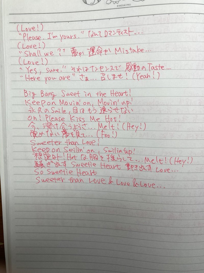 歌詞写経5日目 Big Bang Sweet うさぎなべ Note