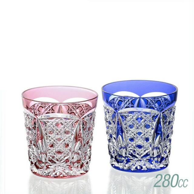カガミクリスタル Kagami ペアロックグラス 赤青 280cc 江戸切子 折鶴紋 Tps9852 27ab Bluewaterwells Com