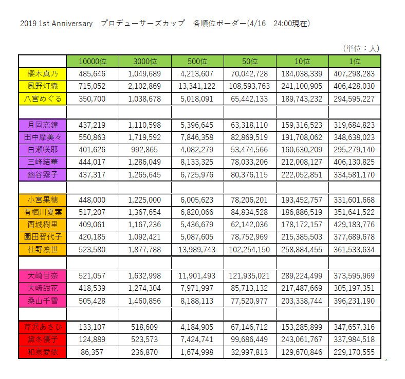 ルバム シャニマス Pカップ ボーダー別アイドル一斉比較 04 29 00 00計測 ゴールド シャニマス Pカップ 金ボーダーはほとんど足並みを揃えて増加中 ラストスパートが激しくなるのはどのアイドルか