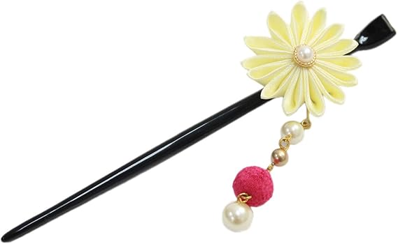 Amazon 京あそび 日本製 ちりめん玉とパール付きぶら下がりかんざし 卒業式 袴 成人式 結婚式 振袖 かんざし 一本 簪 花 和装 2 オフホワイト 和装小物 通販