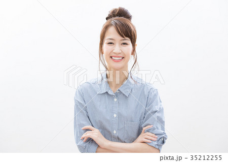 女性一人 表情 ドヤ顔 の写真素材
